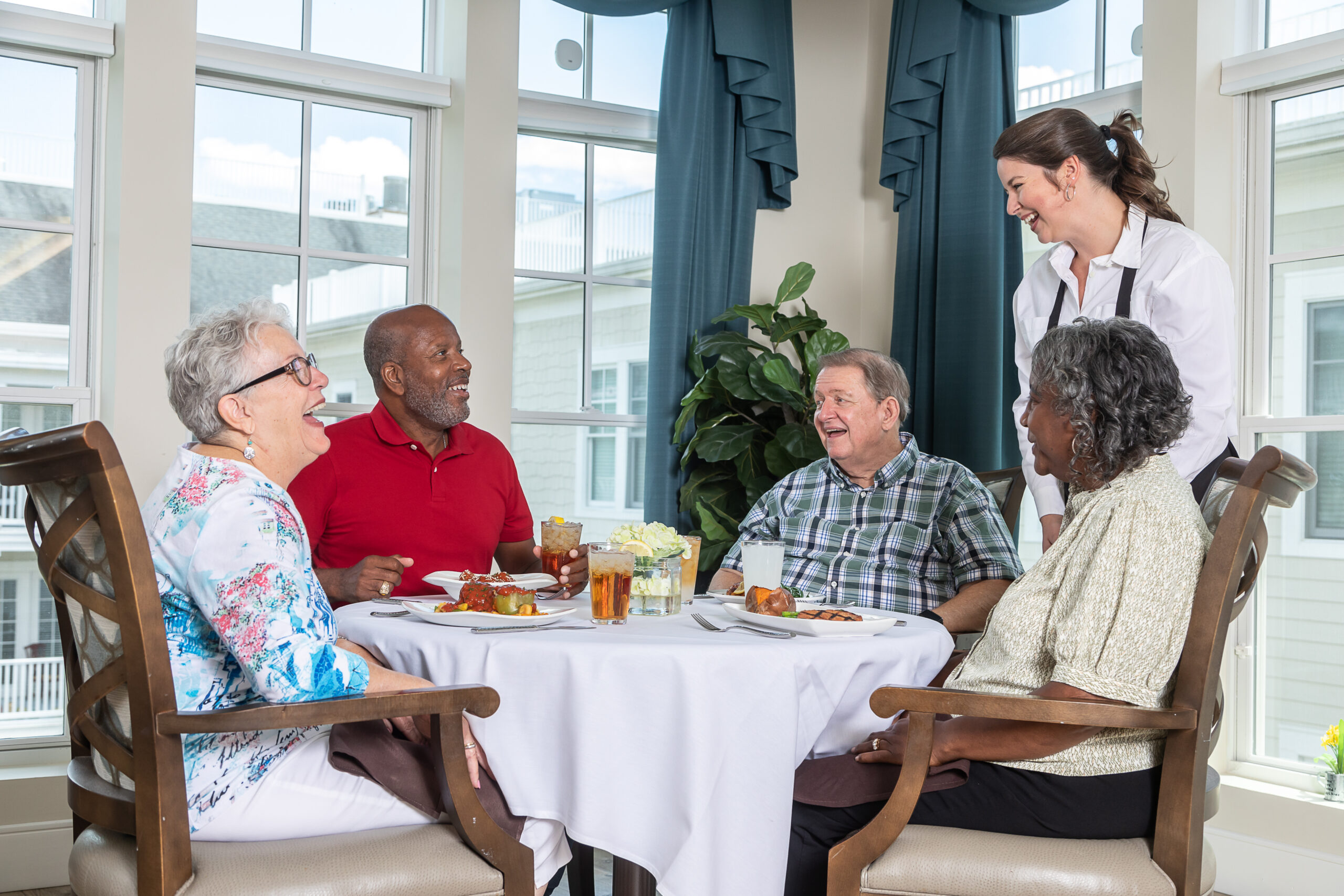 In Assisted Living, you enjoy three meals a day, so you won’t have to plan your meals, grocery shop, cook and clean up afterward. You’ll have freshly made meals served to you in a restaurant-style venue, with no dishes to wash or kitchen to clean afterward.
